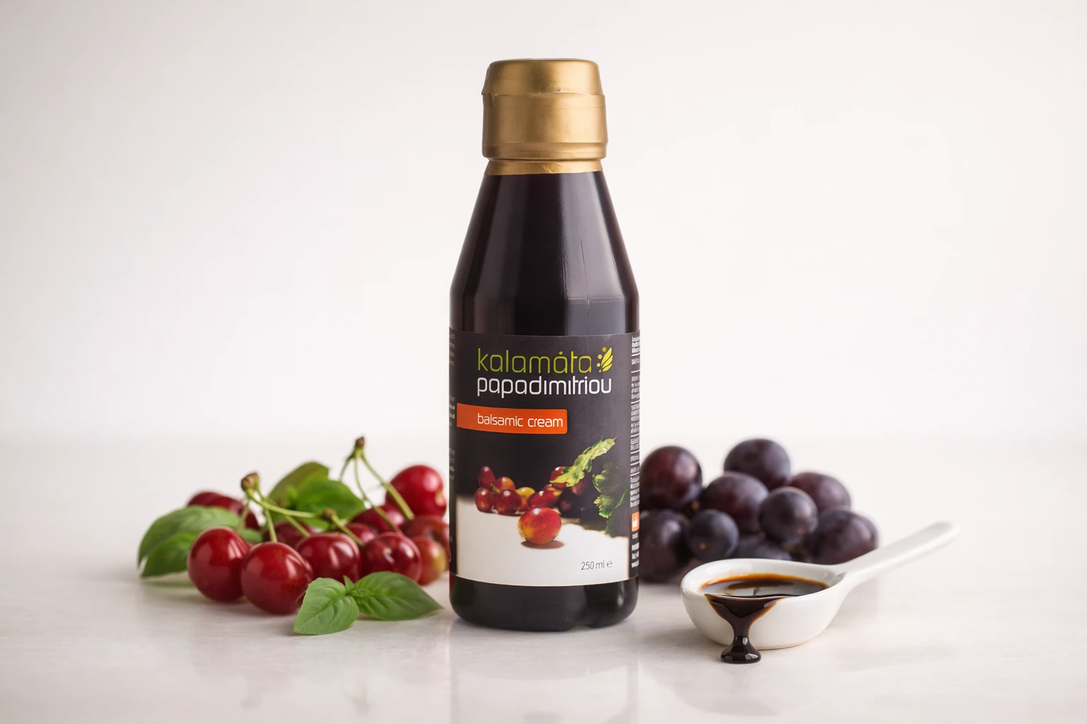 Он создан на основе фирменного бальзамического уксуса Papadimitriou — без добавления сахара. Вместо него используется натуральная стевия 🌿