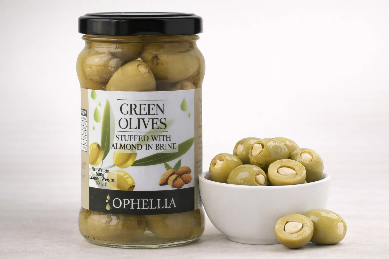 Оливки зелёные с миндалём в рассоле Ophellia — гармония вкуса и текстур