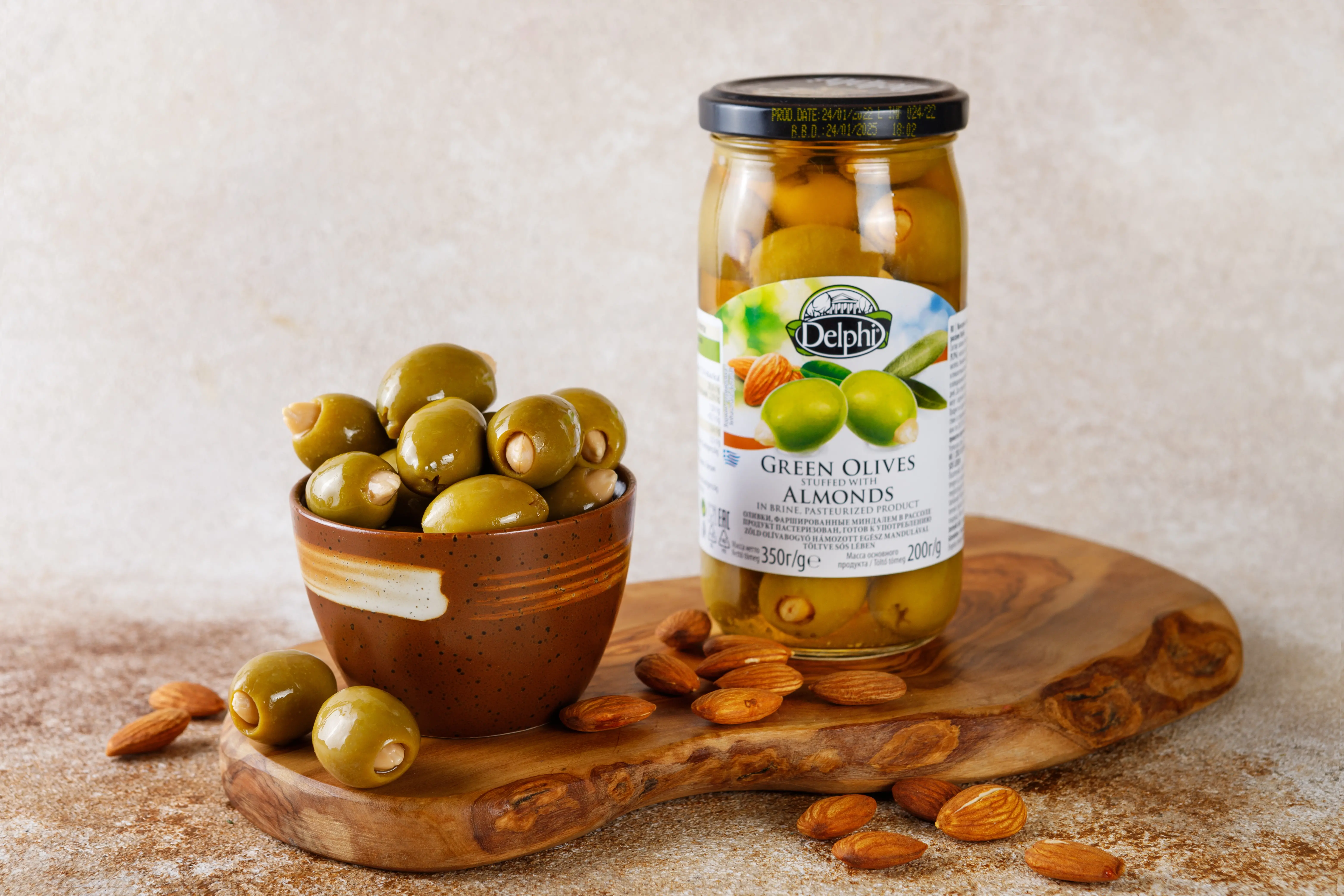 Оливки собираются вручную в Греции, что позволяет сохранить их плотную структуру и сочность. Миндаль добавляет лёгкую сладость и ореховые ноты, делая вкус более глубоким и многогранным.