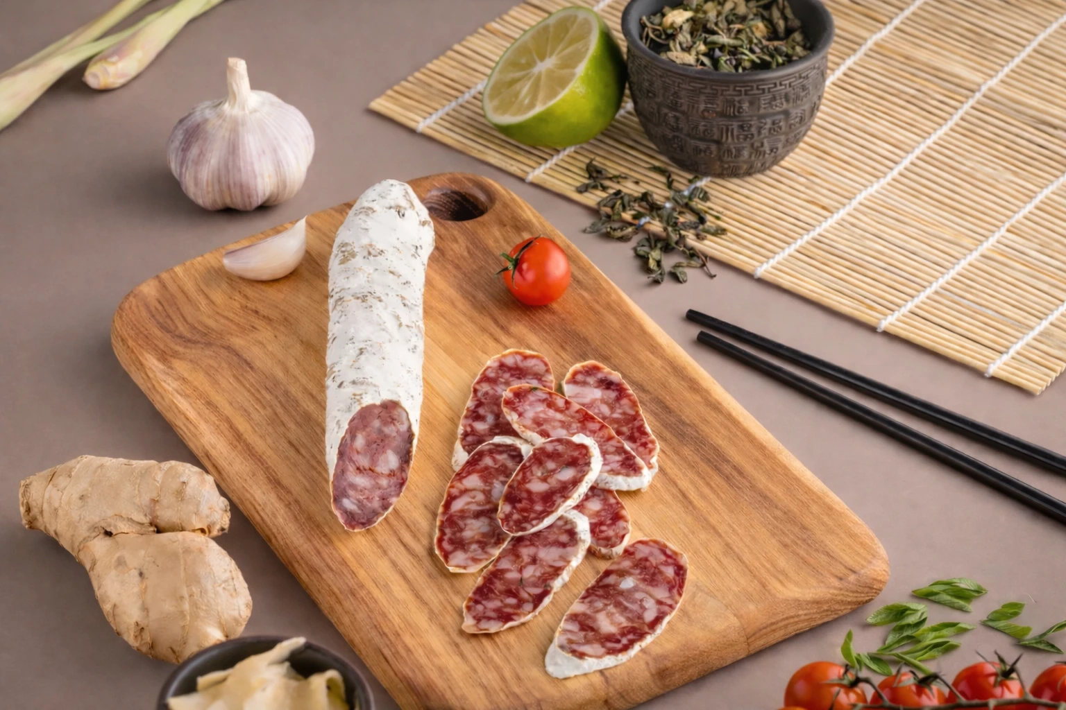 Пряная салями с экзотическим характером и ярким вкусом.