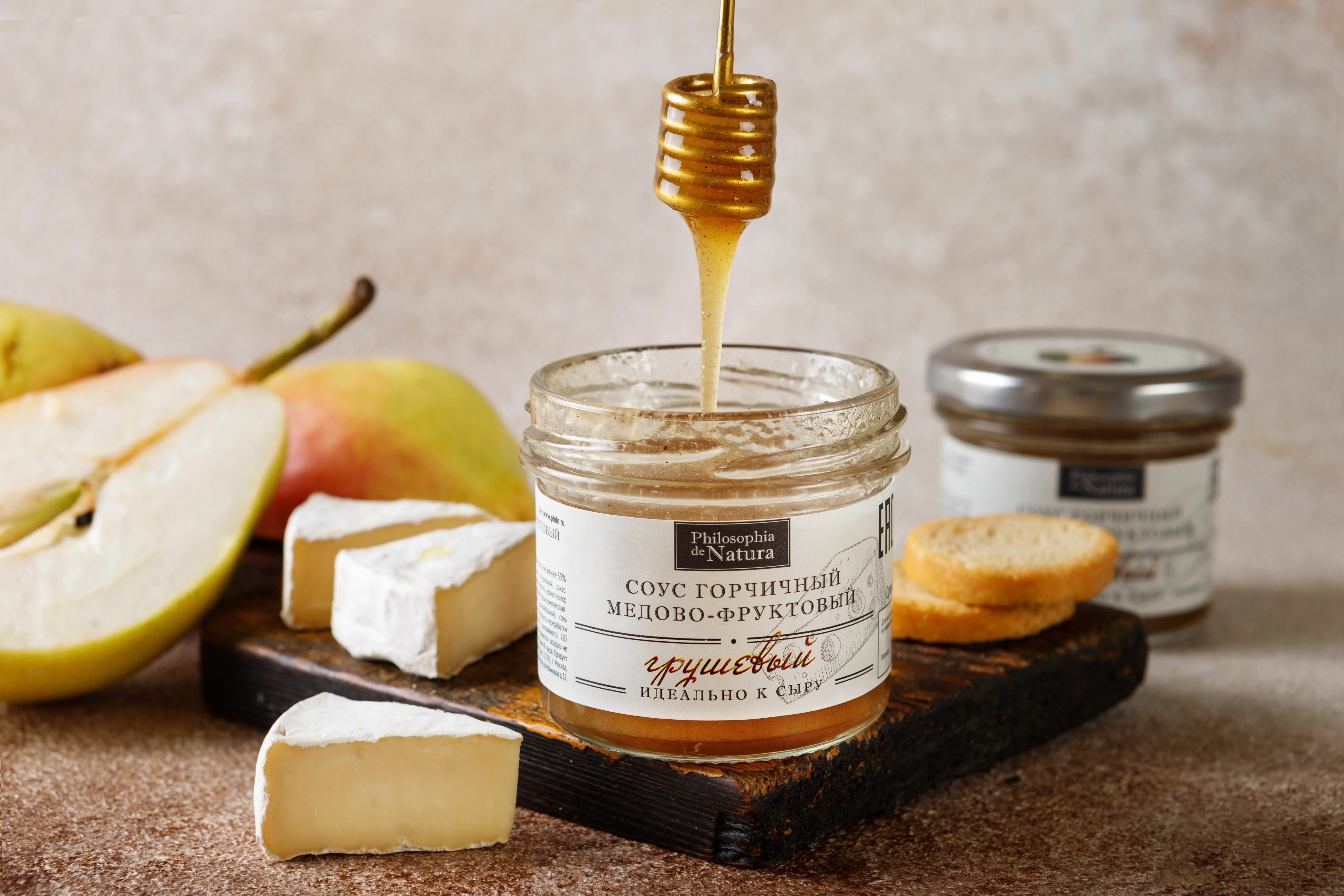 Сладкий, с лёгкой горчичной остринкой и ароматом спелой груши — этот соус будто создан для сырной тарелки. Он обволакивает вкус, придаёт пикантность и делает каждый кусочек сыра незабываемым. Настоящее гастрономическое удовольствие — нежное, тёплое, с лёгким фруктовым послевкусием.