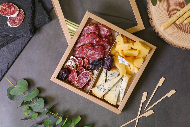 Насладитесь изысканным гастросетом, который объединяет лучшие сыры и деликатесы.