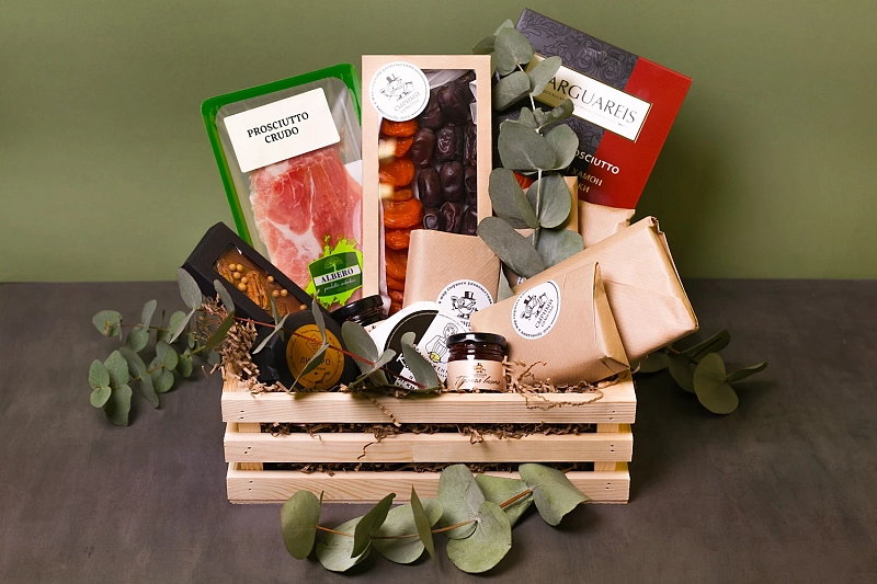 Внутри — 7 авторских и классических сыров, два вида дополнений и заботливо подобранные сладости и деликатесы.