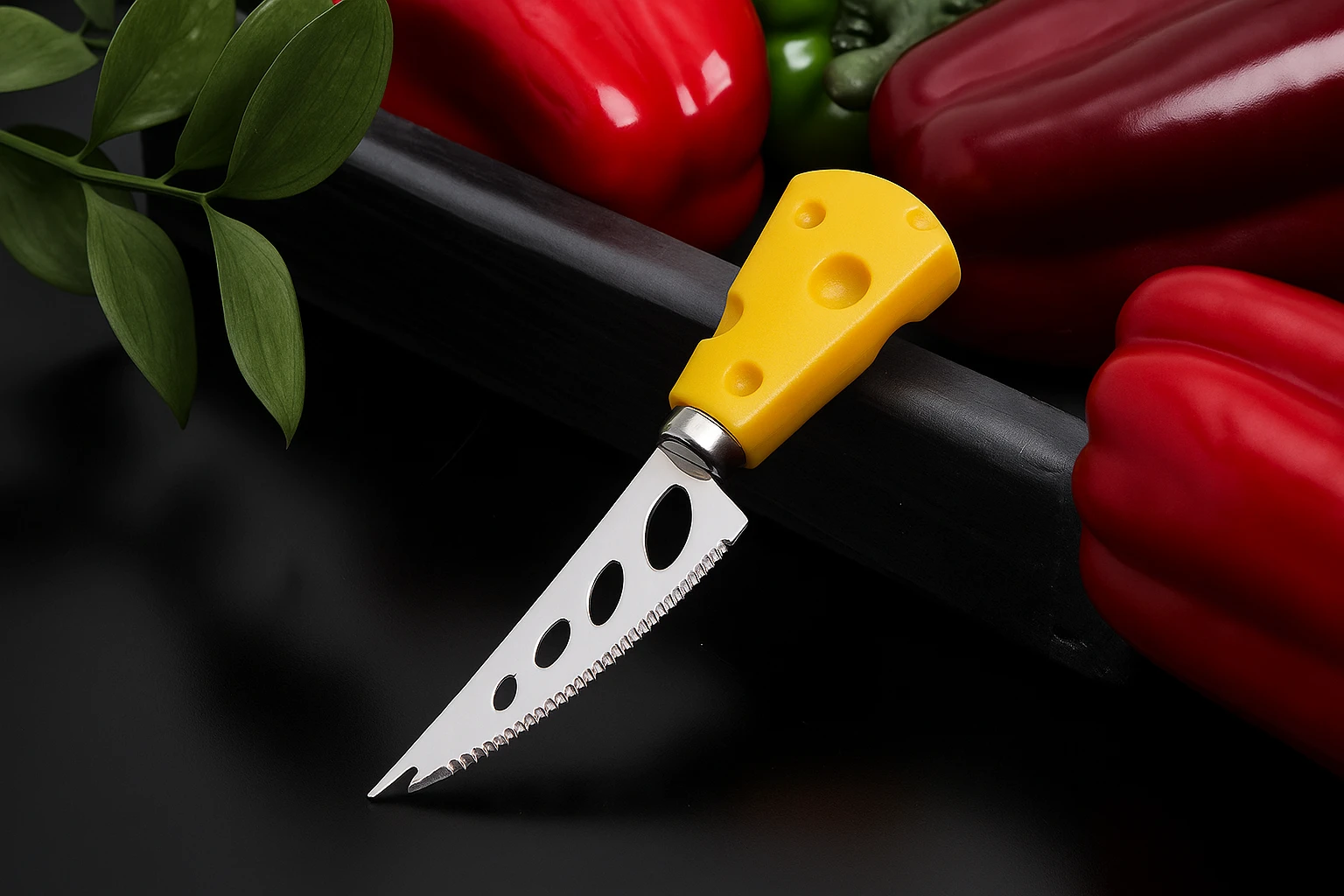 - Яркая ручка в форме кусочка сыра придаёт весёлый акцент сервировке