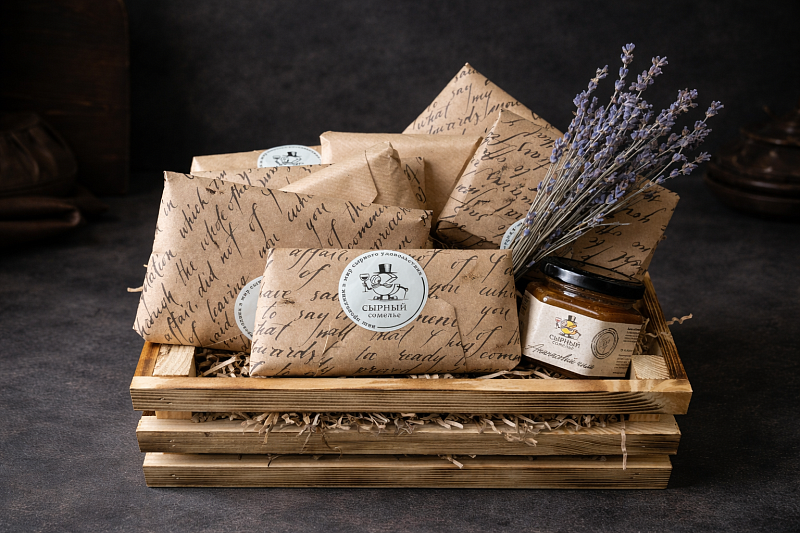 Внутри — большой набор сыров разных стилей, текстур и характеров. Такой подарок станет ярким комплиментом к любому празднику, удивит гурманов, порадует близких и идеально подойдёт для праздничной дегустации.