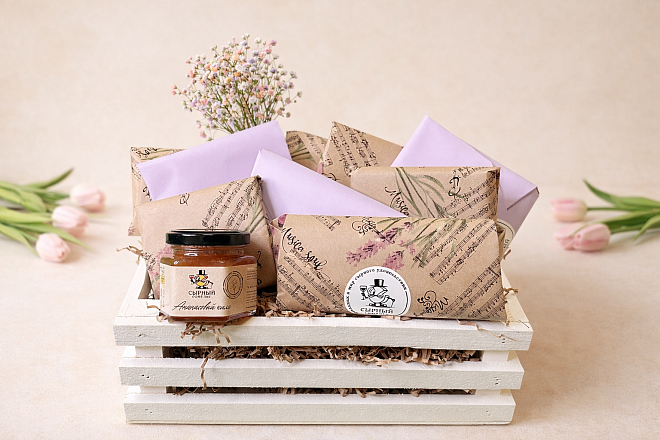 Набор приедет в стильном деревянном ящике, аккуратно упакованном в прозрачную плёнку.