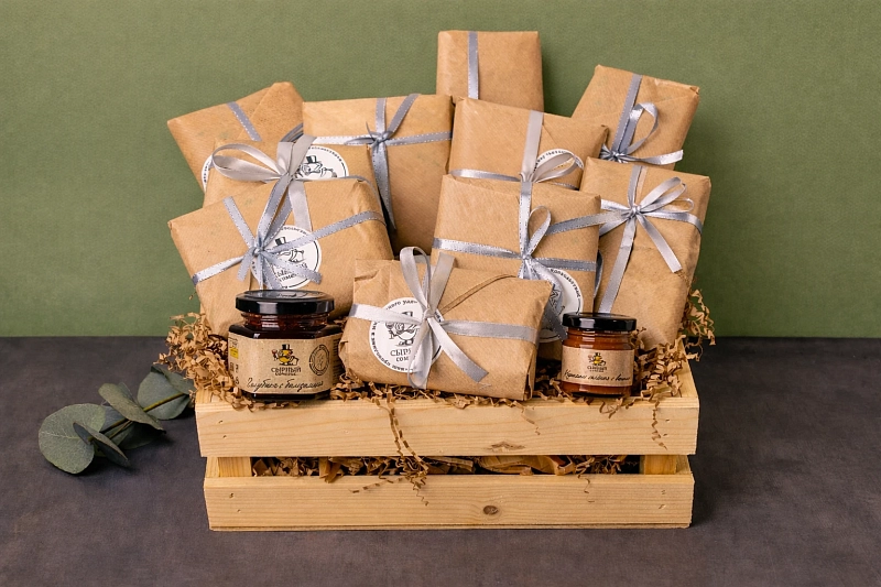 Набор приезжает в стильном деревянном ящике, аккуратно упакованном в прозрачную плёнку.