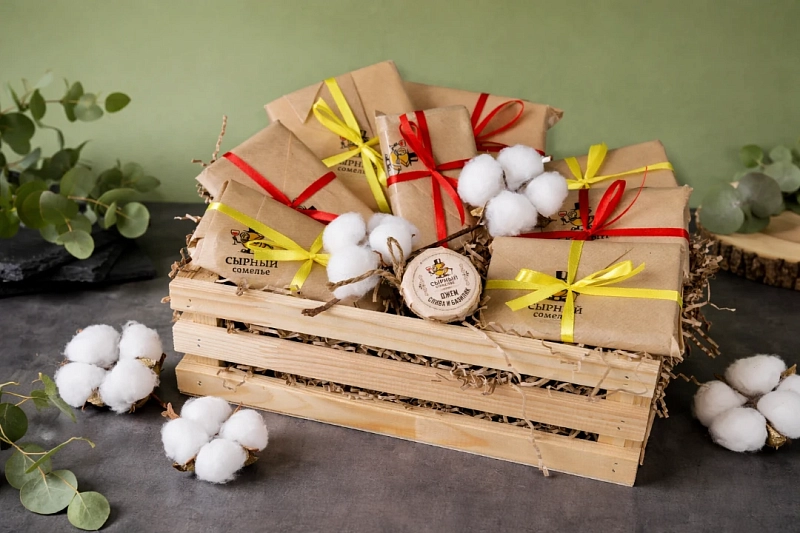Набор приезжает в деревянном подарочном ящике, упакованном в прозрачную плёнку.