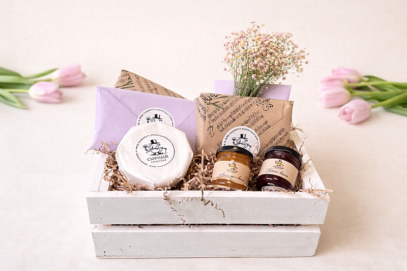 Небольшой, но невероятно атмосферный набор, который радует с первого взгляда и с первого кусочка. Это красивое сочетание изысканных сыров и сладких акцентов — идеальный способ сказать тёплые слова, удивить, поблагодарить или просто поднять настроение человеку, которому хочется сделать приятно 💛.